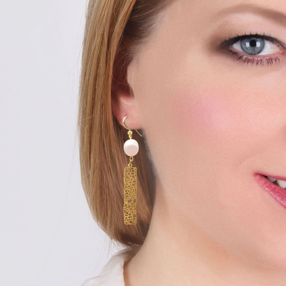 AMETHYST FEBRUARY BIRTHSTONE & GOLD BAR EARRINGS